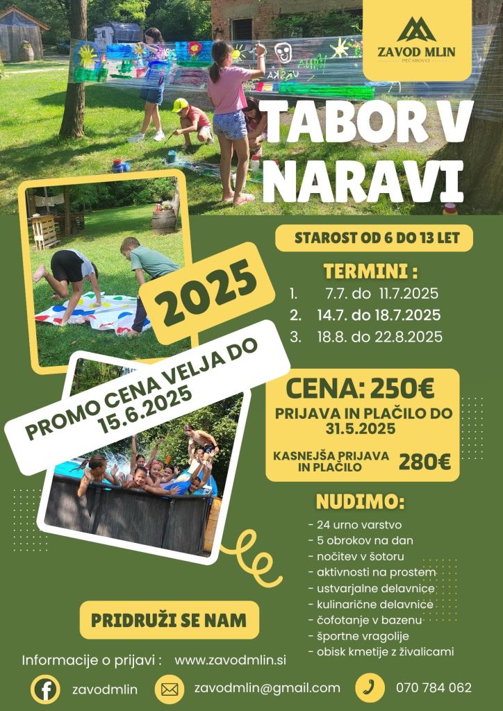 Za vse dodatne informacije in prijave nas lahko kontaktirate preko naše Facebook strani Zavod Mlin, na e-pošti zavodmlin@gmail.com ali nas pokličete na telefonsko številko 070 784 062 (Polonca).